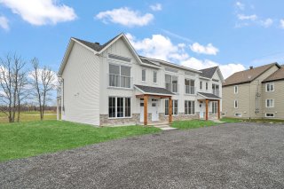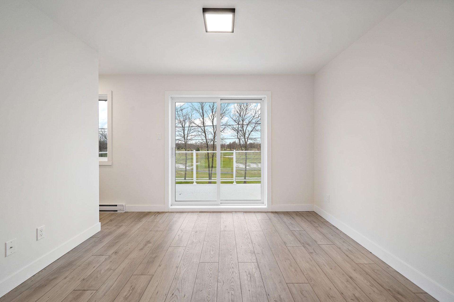Beautiful two-storey townhouse featuring an open-concept main floor with a modern kitchen, bright living & dining areas, and a powder room. Upstairs offers two bedrooms with walk-in closets and a full bathroom with separate shower and bathtub. Located directly on the St-Zotique Golf Club, this home includes two outdoor spaces, two parking spots, and a wall-mounted A/C. Available as of November 1st, book your visit today!